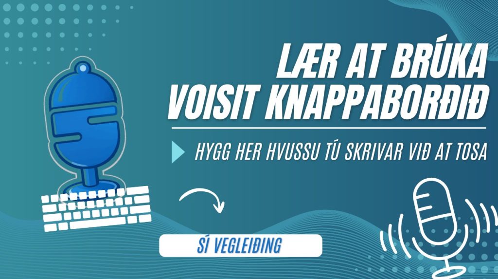 Vinstrumegin kanst tú heinta eina PDF vegleiðing til VoisIT knappaborðið, sum vísir tær hvat skal til fyri at koma í gongd við at nýta tað at skriva við.